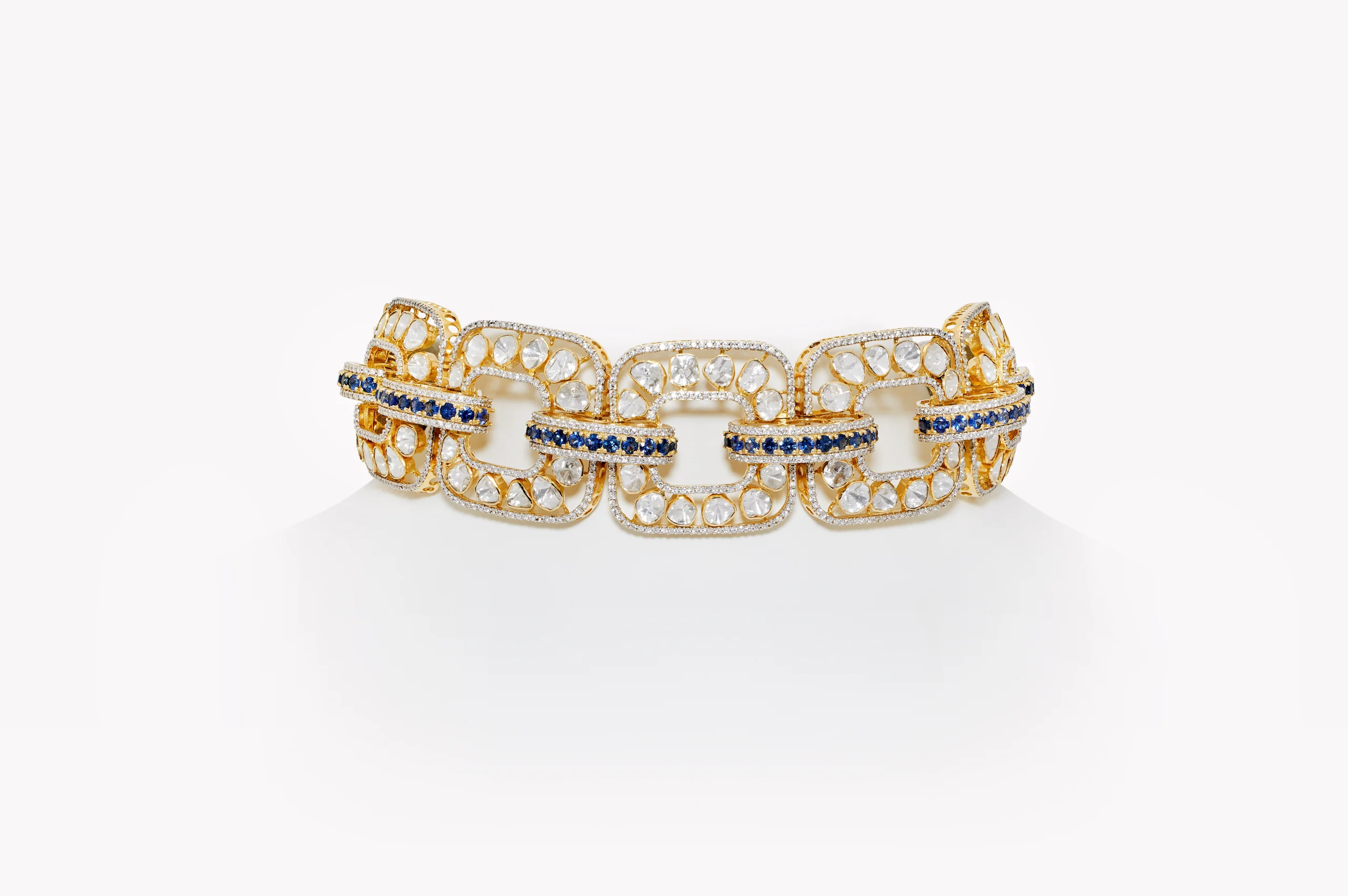 Drawing inspiration from art deco influence, this Necklace structural beauty and timeless charm are enhanced by uncut diamonds and enamel accents. The fusion of vintage and modern elements, with lavish ornamentation and geometric shapes, makes it a captivating addition to any collection.