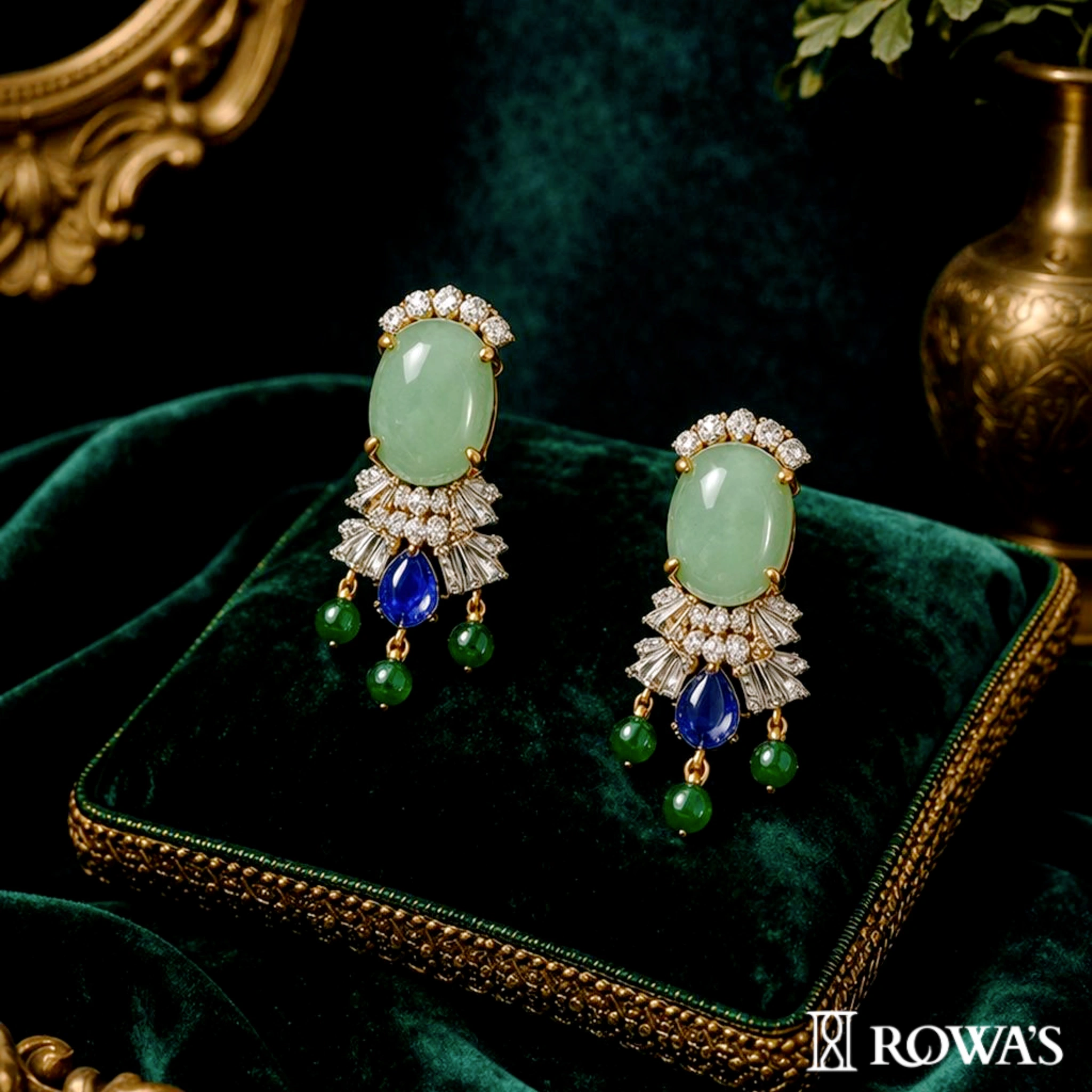 The Royal Emerald Tapestry Earrings draw inspiration from the opulent beauty and intricate designs of royal tapestries. Each earring features a stunning central emerald, reminiscent of the lush greens found in these historic woven masterpieces. Surrounding the emerald are diamonds and sapphires, meticulously arranged to echo the detailed patterns and vibrant colors of tapestry art. The elegant design captures the essence of regal elegance and sophistication, making these earrings a perfect complement to the Royal Emerald Tapestry Choker Necklace. They are ideal for those who appreciate the fusion of historical richness and contemporary luxury, embodying both grace and grandeur.